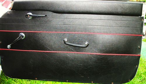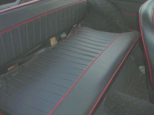 - Newer proper vinyl upholstery,front and rear - black with red piping,