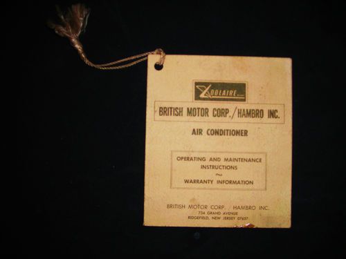 - Rare dealer-installed 1967 BMC Air Conditioner (blows-not cold) with original manual & dash tag