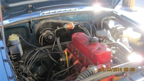 drives and stops well and has had many items replaced ,new gas tank ,new fuel pump, new brake master cylinder, new clutch slave cylinder ,new rear brake line, new battery, new paint job, new tune up spark plugs points rotor, new front bumper, new grille, new may need newer tires these where just to test drive car for awhile but okay for now. car is sold as is where is not warranties implied or expressed .this car came out of a 25 year dry storage the car has no rust to speak of there was some on the hind leg which got a professional repair with new panel welded in.the interior is all original from what I can tell nothing has been taken apart or replaced. someone added a center counsel with armrest.the engine sounds very healthy and it will run and drive but not sure of the overdrive because its not connected. please let me if you have anymore questions. 480-298-0025 |