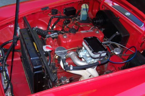 1967 MGB Roadster. 100% frame off restoration/rebuild.2000 miles on a total restoration/rebuild. Everything on this vehicle was removed and examined, refurbished or replaced with new parts with the exception of the tachometer and radio mentioned below. Engine 100% rebuild with a new Weber 2 step carburetor and manifold. All internal parts were checked and except for a .010 turned crankshaft all parts were replaced new. All seals, bearings, pumps, valves, lifters, rings, cam, oil pump, water pump, timing gears and chains, distributor, distributor cap, wires, plugs, thermostat, etc. were replaced with new parts. All quarter panels, rocker panels, valances, floor boards (trunk and cockpit), etc., were welded in place new. All upholstery, carpeting, dash coverings, door panels, etc. replaced new. New brakes and brake lines. New clutch, clutch plate, throw out bearing, clutch master and slave cylinders were replaced new. Totally undercoated (car was on a rotisserie), new tires, hub caps, and body chrome were added with a new paint to entire car. At no place on the car can you detect a different color paint. Car has excellent soft top as well as boot cover and tourneau cover. All windows and mechanisms have been removed and new seals replaced. Seat upholstery and door panels have been replaced new as well as carpeting and all inside panels. All wheel bearings, and all bushings and seals have been replaced on the frame. New steering wheel and turn signal apparatus also replaced new. All electrical has been completely stripped from the car and refurbished or replaced. Car was converted from positive ground to negative ground so tachometer and radio do not work and will have to be replaced. I will negotiate the cost of these items out of the selling price when appropriate. The speedometer, oil pressure, temperature gauges all work. The heater, wipers and washers, although, crude by today's standards, work. Radiator with all related hoses and clamps was replaced new. New oil cooler and hoses were installed. All steering mechanisms, tie rod ends, etc., checked and replaced where necessary. All snaps, top and Tourneau hardware replaced. New windshield and rubber installed. Side windows resealed with all new door interior handles and window handles. New fuel pump. Many, many more new parts too numerous to mention or remember. Car was converted from positive ground to negative ground. No expense was spared on this car. Three years of restoration work. You can purchase an MGB for much cheaper but you will rarely see one like this. $15000 parts plus 100's hours labor invested as well as labor for total engine overhaul, paint job, alignments, etc. Fun to drive, a head turner and conversation starter. We are selling because we need a tow vehicle for our RV that will hold our two grand children.