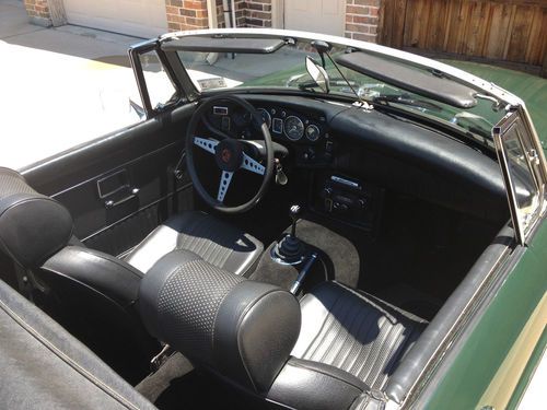 When I aquired the car (from the northern Arkansas area), it was a good solid driver with great sills, and rockers. The prior owner had removed the engine to replace the clutch, and while the engine was out he went thru it with new bearings, rings, and freshened up the head. The car also had a new top and new tires. The car had been repainted in the original BRG. The paint was a driver quality for sure but it fit my needs and I figured I could improve it over time. The wheels were repainted in a gray color that is a warmer gray than the factory color. I've come to like the color of the wheels as I think they work with this darker (1971) shade of BRG quite well. The car had its original engine and 4-speed (non overdrive). After my purchase the car just needed some carb adjustment, and I enjoyed it as it was. While I had very little history of the car I believed that the the 67k or so miles showing may have indeed been original. I know speedometers can be changed in 20 minutes but the car had little details and had many original non-worn components (like the seat vinyl) that my other British cars were always lacking.