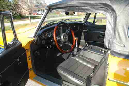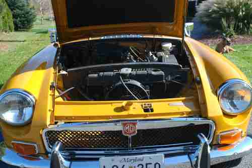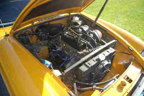 The bottom side of my car looks brand new from all of this work. The engine runs perfect and has most of the original components to include the SU downdraft carbs. I have never had to do anything more then tune this car up. It starts on the first turn of the key and runs and idles perfectly. The top was replaced in 2007 with the rest of the exterior renovation. There is NO rust or even road rash on this car. All lights, turn signals and gauges work fine. The speedo jumps a little and more then likely needs a new cable. Tires have 75% left on them. I do not really want to sell my MG but honestly my wife has asked that I do since I bought another project car. There is nothing more for me to renovate on this car. There are ZERO rips or tears on the interior and the carpet front and back is perfect. I have every receipt for every part I have ever bought and for all the service I have done to this car. I honestly have one small door ding from someone opening their car door into me. I knew I should not have parked that close.