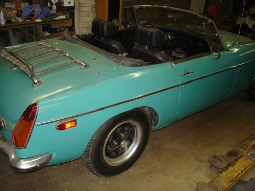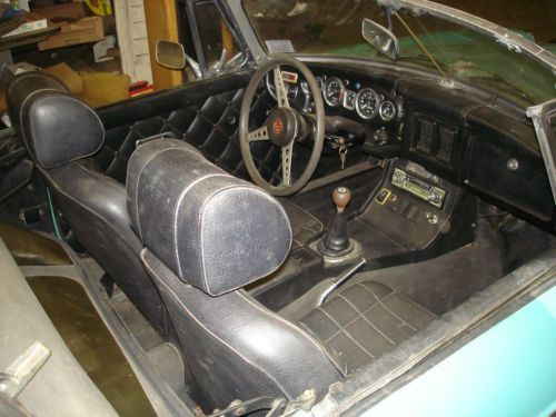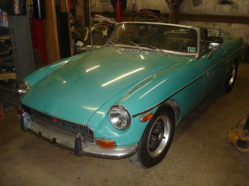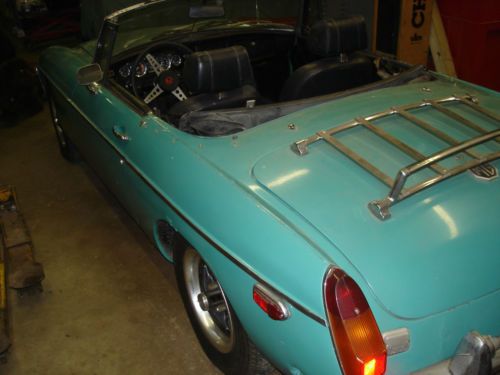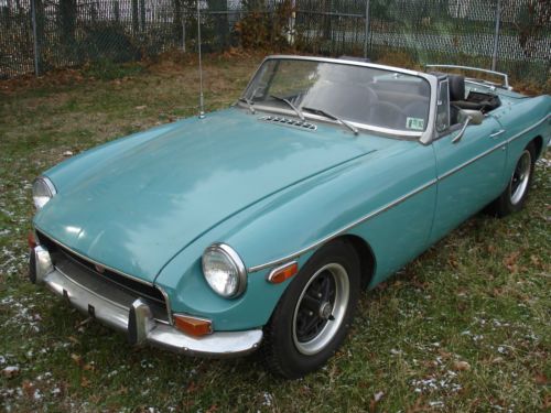 Off the road, inside-stored since 1992. Runs well with good oil pressure and no overheating. Trans shifts smoothly with good clutch hydraulics. Brakes work, but should be gone over because of long-term storage. Dash will need recovered because of cracks on top. Seats have a few small splits. Top frame is good, but new top will be needed. Glass is good. Underside of the body is good with a couple of small holes in the floors. Sills and castle sections are good. Some filler has been used in the lower fender areas. Hood has some damage at the rear, but does not appear to be sprung. Trunk lid is good with no crack at the prop rod. Trunk lid is solid. Underhood area is good with no rust problems. Smog equipment is off, but a good pump is included. Overall, a good (one-year-only color) MGB roadster for restoration, since it runs well and is structurally sound. Comes with a clear PA title and is sold "AS IS" for restoration. Shipping is the buyer's responsibility, but can help load if needed. NO PayPal on this item. Email or call 717-244-0669 with any questions.