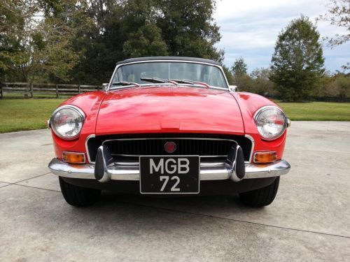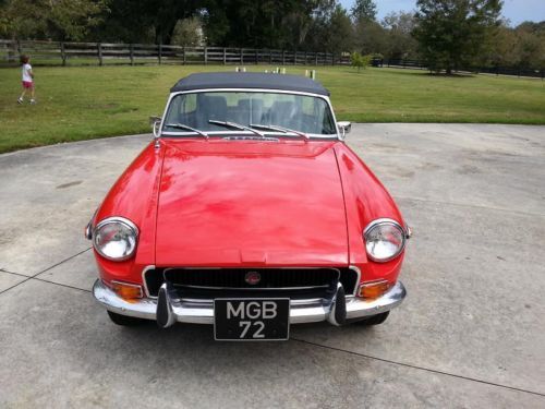 For sale is a 1972 MGB Roadster in very good condition and a daily driver. It is a good platform for full restoration or daily driving. It has new tires, beauty rings, complete brake system including lines and master cylinder, new tube shocks from previous owner conversion and springs replaced, new distributor, coil, wires and plugs, rebuilt SU carbs(2), complete rewiring front to back, new taillights, new seat covers and carpet, new steering wheel, new roof, new muffler, underside and floor boards completely redone, windshield wipers system replaced, new battery, new poly bushings all the way around. The body is straight with no dents or body work.