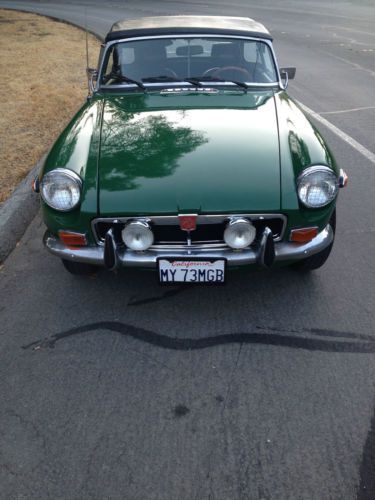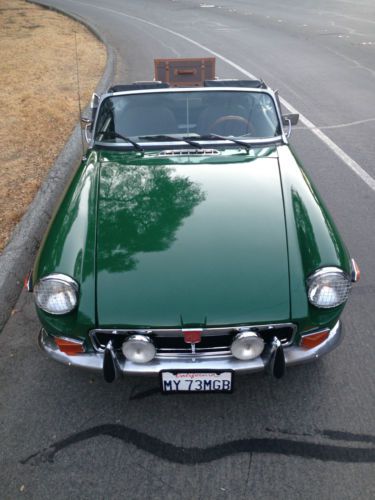 1973, the desirable chrome bumpered MGB. I am the third owner of this 41 year old English Racing Green MGB. I bought the car from an older gentlemen who could no longer use the car due to physical limitations and he acquired the vehicle from and MG mechanic who owned an English vehicle repair shop. He is credible for the improvements and restorations that brought the car to it’s present condition. Everything on the car looks original but the radio which was upgraded to a unit that has a CD player with several speakers. Nardi woodgrain steering wheel (Original steering wheel will be included in sale) and also the wheels were upgraded to the best fitted original brand new Rota-RB set (as seen in pictures.) Also, the front grille is brand new and is of metal and chrome material (not plastic.) The car runs good and shifts well, I have driven other MGB’s however comparing this vehicle to those in it’s class, this one feels much stronger and smoother. There have been many improvements including brakes and the clutch system. It’s visible in the pictures that most mechanical parts have been upgraded and the muffler from the engine to the tail pipe is new. As far as I know, all lights and electrical parts are functioning and the windows and lenses are crack and chip free (as seen in pictures.) The car is already registered and has 2015 tags and due to it’s age, it’s California SMOG exempt. The windows have been professionally tinted which are easily removable if not desired by new owner. I tried to the best of my knowledge and ability to describe the car correctly, however please see the pictures and ask any and all questions you may have before engaging in bidding. The condition of the sale according to my car collection policy is being offered on an as-is basis. This MGB is a part of my classic car collection which I am downsizing due to relocation to a smaller property with less indoor storage space. Car comes with MGB handbook and original Leyland MG manual as well as a brand new tonneau cover in a special case. Please be noted that the last two vehicles I sold were driven immediately after the sales across the country earning me very reputable and excellent compliments. Thank you and good luck! |