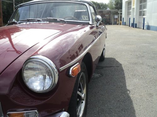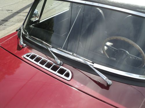 correct damask red with navy blue int.The whole car has been gone thru from front bumper to rear.The lucas fogranger's are not wired in and the spare tire which is new is not in pic's.The car start's run's and drives like new.As you can see by the pic's just about everything is new.The top is period correct amco and the car has been changed to stow-a-way top as seen in pic's.Like the look of the car when top is in trunk very clean with no bump's behind the seat's. The original luggage rack is in the picture's an will need a rechrome to be perfect,holes are there to mount.Email with all your???