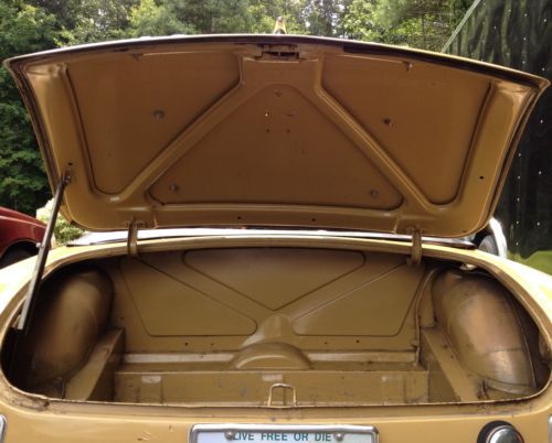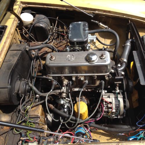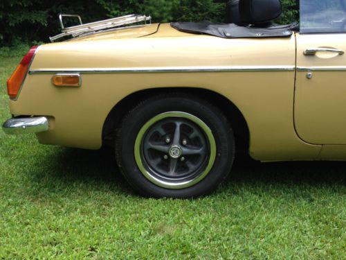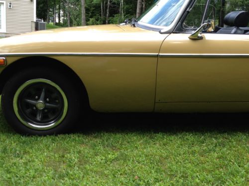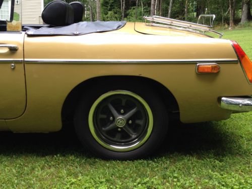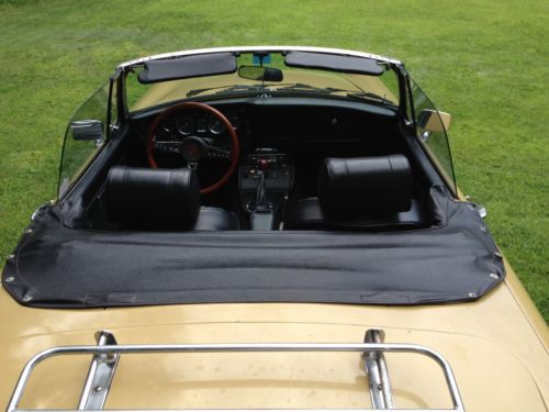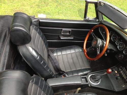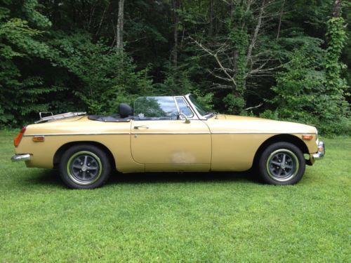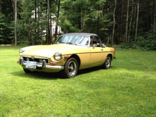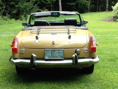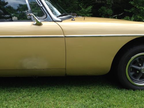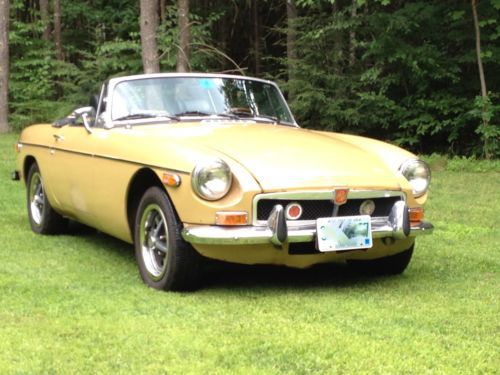 1973 MG model B two passenger convertible. The car is not museum piece, but is an excellent driver quality car. Overall the body is very good condition. The interior is new and really quite nice as can be seen in the pictures. The convertible top and cover are both black and in excellant condition. No obvious dents, some areas of the exterior body need attention, car needs to be re-painted and floors, door bottoms and sills are solid. Mechanically the car is in very good working condition and is fun to drive. The following work was completed over the last 5 years, Lots of new parts: OEM MGB Original wooden steering wheel, radiator, radiator fan, 2 soft tops, windshield, Accelerator Cable & guide, Starter, wheel bearings, thermostat, seatbelts with shoulder straps, handbrake cable, Trunnion handbrake cable, wiper blades, all brakes & rotors, calipers, brake master cylinder, clutch slave cylinder, leaf springs, tube shock conversions - front and rear, all tires including spare tire, fuel tank, fuel sending unit & seal, tie rod end kit, weber carburetor, alternator, distributor, ignition coil, fuel pump, fuel filter, interior, rear leaf springs, radiator, cooling fan, plugs, points, distributor cap & rotor, the trunk floor is solid and front end rebuild including kingpins and all suspension bushings. Included in sale is new OEM HOOD, steel (British Motor Heritage, $800 value) not shown in black primer and new lower panels LF & RF for front fenders (lower 12 inches, $100 value) not shown in black primer.