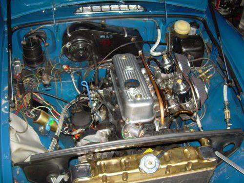 Some details on the car - It went through a 3 year rolling-renovation when I first bought the car. It has been repainted in the original teal-blue and has a tan convertible top. The seats have been redone in the original autumn-leaf color. Black carpeting is in excellent shape. Wood steering wheel was added and I still have the original. Top hasn't been on the car in years and still looks brand new. Bridgestone tires only have about 1,500 miles on them. Wire wheels are bolt-on Daytons. I have the original Rostyles. Engine is a '71 rebuilt block, bored .60 over with a larger 270 cam, EI, braided fuel and oil lines, and K&N air filters. Engine was rebuilt at 125,000 miles. Car has original jack and tool kit. Trunk, or boot, has custom fit black carpeting. The car gets driven around 2,300 miles a year and is always garaged and usually covered. It's not a show queen - car does have some paint nicks, and the left side of the driver's seat has a couple of tears that aren't visible when the door is shut. There's a slight crack in the lower left hand corner of the windscreen. This is a fun little classic car that is not expensive to maintain. Car has a clear FL title. Front and rear plate do not go with the car. The reserve is extremely reasonable - I'm a motivated seller! Make it yours today! |