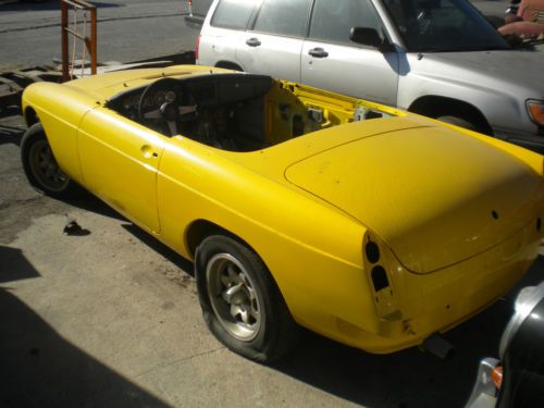 2 MGB' S SOLD AS A PACKAGE. THE YELLOW ONE............ IS A 1974 ROLLING BODY ONLY WITH A CLEAN TITLE...this car HAD A BLOWN UP V8 (I THREW IT AWAY)....AUTO TRANS....(STILL IN THE CAR) PAINTED ONE YEAR AGO...NO RUST !!!!!!!!! PERFECT BODY. NO SMOG REQUIRED...