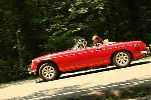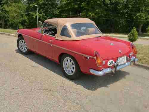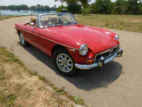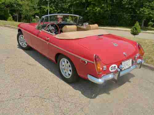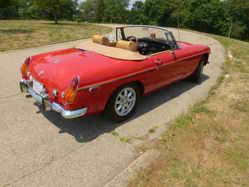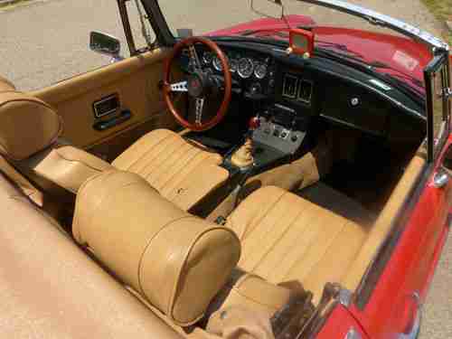 Ready for Spring. 1974 MGB Red & Tan chrome bumper Roadster