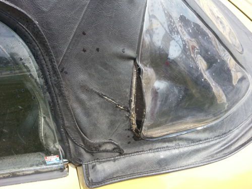 91,682 miles - Original Engine rebuilt 2010 ($3200 have receipt) Good tires, wire wheels knock off hubs, seats and carpet replaced, Newer top with slight window damage from folding down (see picture) Full tonneau cover, boot cover for open top, two car covers, fiberglass hardtop (needs restoring) Solid car to restore or just enjoy! |