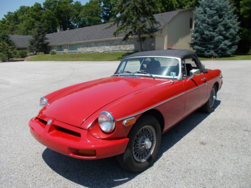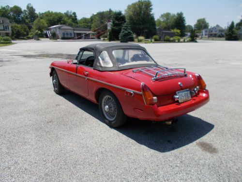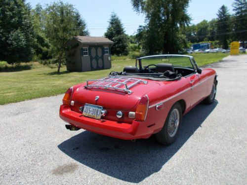 1975 MGB convertible, 4 cylinder 4 speed, This car is a very good driver. It was restored about 15 years ago, there is some rust starting to come out on the rockers and rear quarters. The car still look very good, the paint is nice and shiny, the body is strait, other than the rust it is in nice shape.Someone did shut the trunk with the latch up so there is a mark on the trunk lid. The car is an original wire wheel car, they are in good shape. The car runs and drives good, it does sometimes grind a little going in to 3rd a common problem with these older MGs. The car is Pennsylvania inspected, and is very roadworthy. The interior is good, the radio is missing and the dash panel is broke around where the radio was, i think the radio was stolen and they broke the bezel. it can be easily replaced. The top is fair, it could use to be replaced. Overall this car is a very fun car to drive,and it looks good going down the road. There is a very reasonable reserve so bid to own. If you have no feedback please email me before bidding.