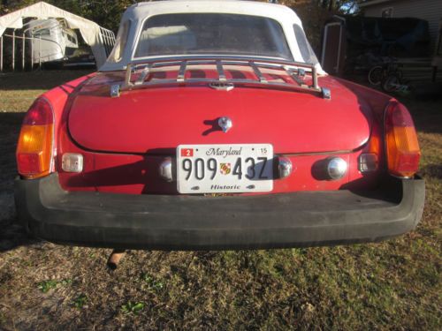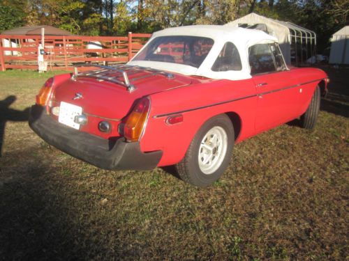 YOU ARE BIDDING ON A 1975 MGB, THIS IS A DAILY DRIVER THAT GETS GREAT GAS MILEAGE. STARTS RIGHT UP EVERY TIME RUNS GOOD AND GETS LOTS OF ATTENTION ON THE ROAD. I HAVE HAD THIS CAR FOR A FEW YEARS NOW AND HAVE REPLACED THE FOLLOWING PARTS.... NEW BATTERY .HEATER CORE AND ALL HEATER BOX GASKETS AND SEALS. UPPER AND LOWER RADIATOR HOSES AND HEATER HOSES. PLUGS WIRES CAP AND ROTOR BRAKE PADS AND NEW CONVERTIBLE TOP NEW TIRES HAVE LESS THAN 3000 MILES ON THEM. I ALSO HAVE A NEW GAS GAUGE SENDING UNIT SPEEDOMETER CABLE AND VARIOUS OTHER PARTS THAT I HAVE NOT YET INSTALLED. THIS IS A GOOD RUNNING FUN CAR THAT NEEDS ALITTLE WORK TO BE GREAT. I HATE TO SELL IT BUT I HAVE WAAAAAYYYY TO MANY PROJECTS RIGHT NOW AND HAVE TO LET THIS ONE GO. PLEASE ASK QUESTIONS. I MAY BE ABLE TO DELIVER THIS CAR FOR AN ADDITIONAL FEE. BID TO WIN !!!!!!!