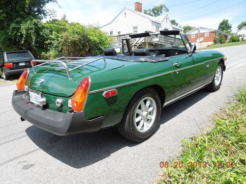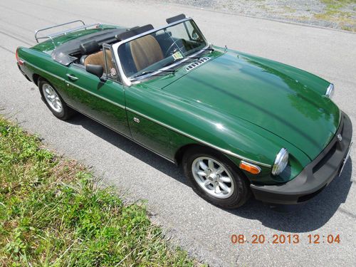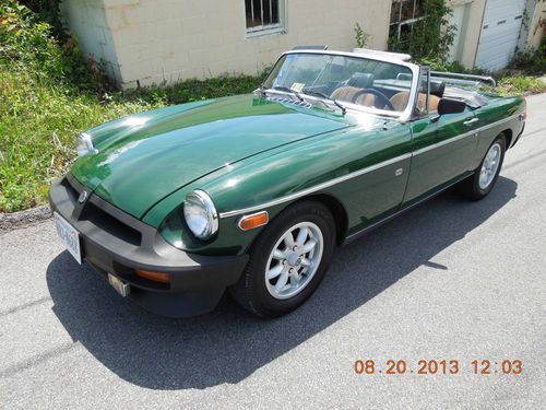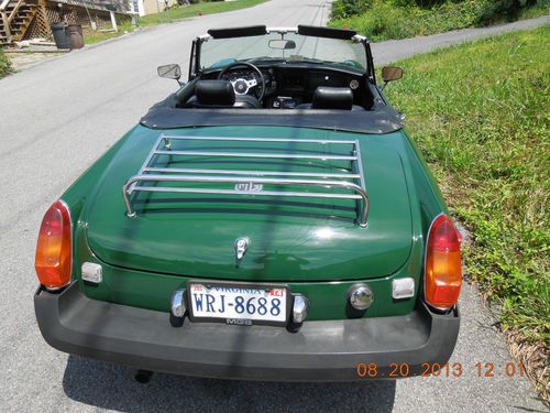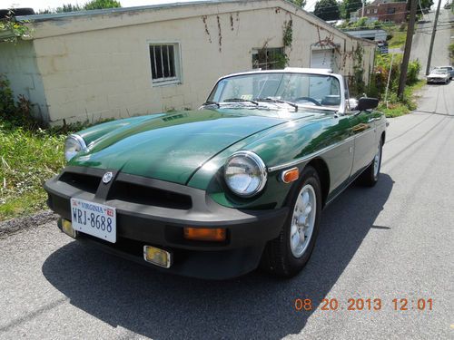 1975 MGB Tourer,a superb example,low mileage(45,500),finished in British Racing Green with Black interior.This car was totally upgraded in 1993 by a well known MG restorer.It obviously was a great car to begin with,the upgrades were done from a performance standpoint and to make the car show condition.It has been lovingly cared for since ,always covered and stored indoors.The pictures show the detail in which this car was attended to.It drives wonderfully,everything works well,it was just inspected.I have driven hundreds of MG's over the last 40 years,other than my 1969 GT(8,000 miles),this one drives better than the rest.It handles great,has plenty of zip,and just overall feels like new.Call 540 447-4389 for further details.The following are options and accesories.