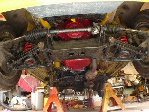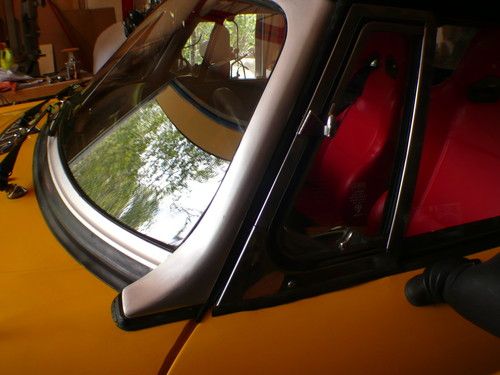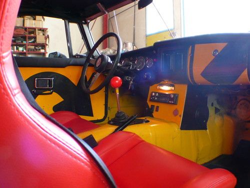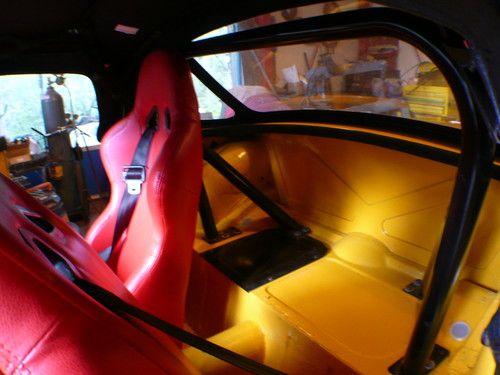 The interior is done with aluminum road sign door panels and competition seats professionally modified to fit the narrow seat wells.