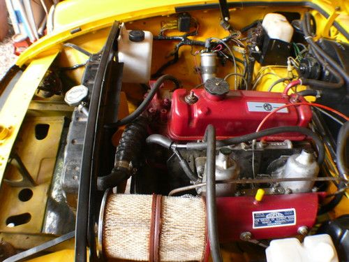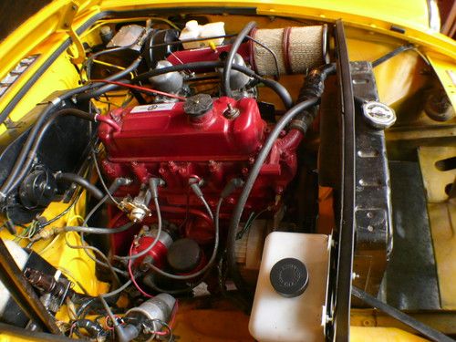 This car was from Arizona - completely disassembled for paint and rebuilt with all new rubber parts, trim and a rebuilt engine including new .020 pistons and a new camshaft. It has an excellent, crisp lightly used gearbox, twin SU's and Mallory ignition. The charging system is Delco. The top and the windshield are also new. It has brand new G-Force tires on American Racing wheels and new brakes.
