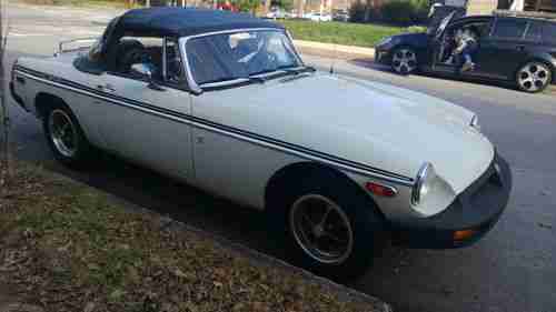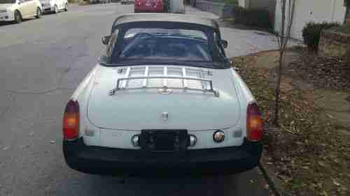 White and Black, black original interior. Runs great. Only 82K miles on this baby. New exhaust, new battery, new fuel pump, new tires, new ragtop. Car cover included. This particular year didn't have a very good carburetor so we upgraded it to a better one. Handy choke located under the steering wheel for cold mornings. Includes the title and two part ordering catalogs where you can order any part ever made. A fantastic resource for avid MG fans and restoration projects. The key seems to be stuck in the ignition and I don't want to mess anything up trying to yank it out with pliers. It's probably nothing serious. The weather is warming up and it's perfect timing for the upcoming spring and summer with the top down! This thing turns heads left and right. It's fast as heck and makes me smile every time I drive it. It's worth about 7K so I'm starting the auction off at 3K. Local pickup, otherwise buyer arranges any and all freight. Happy bidding :)
