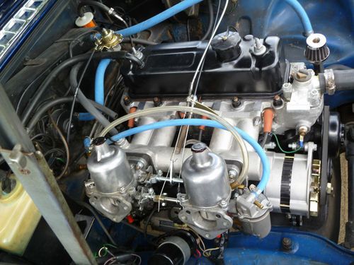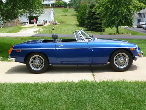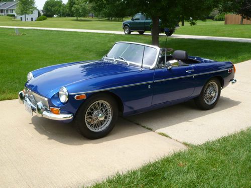 Car repainted professionally in 09/2005 color is Saturn Pacific Blue. The MGB looks very good at 6 inches. Car has a couple chips as shown in pictures and a couple spots where the clear coat sagged. Rebuilt motor bored 40 over with less than 500 miles on it. MMX aluminum cross flow cylinder head, roller rockers, lightened aluminum flywheel, Piper fast road cam shaft, SU HS 6 dual carburetors, rebuilt transmission with electronic overdrive, and new clutch. Other new tems include carpet,dash,door panels,windshield, complete Monza exhaust with Pacesetter header. Front suspension rebuilt,new rear hubs installed. New items include gas tank,rear hubs. Will provide new set of 5 Cooper radial tires with the car. Fuel sender does not work, I replaced it with a new unit which is not accurate, will need adjustment or replacement. All other electrical works. New black Robins convertible top goes with the car, it will need to be installed on the convertible top frame which goes with the car and is not attached currently. I lost interest in MGB and have spent over $20,000 redoing it, which I paid $1,381 for. Restorations are costly save time and money and buy a car that has been restored by an enthusiast.