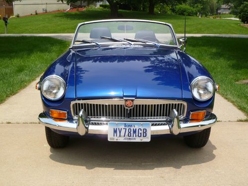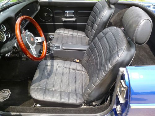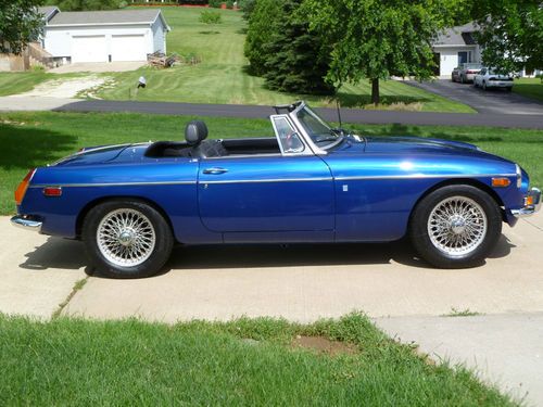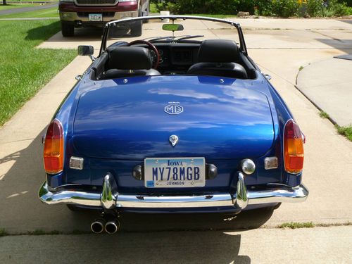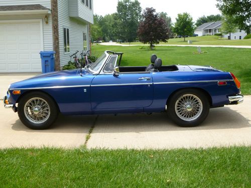 Car repainted professionally in 09/2005 color is Saturn Pacific Blue. The MGB looks very good at 6 inches. Car has a couple chips as shown in pictures and a couple spots where the clear coat sagged. Rebuilt motor bored 40 over with less than 500 miles on it. MMX aluminum cross flow cylinder head, roller rockers, lightened aluminum flywheel, Piper fast road cam shaft, SU HS 6 dual carburetors, rebuilt transmission with electronic overdrive, and new clutch. Other new tems include carpet,dash,door panels,windshield, complete Monza exhaust with Pacesetter header. Front suspension rebuilt,new rear hubs installed. New items include gas tank,rear hubs. Will provide new set of 5 Cooper radial tires with the car. Fuel sender does not work, I replaced it with a new unit which is not accurate, will need adjustment or replacement. All other electrical works. New black Robins convertible top goes with the car, it will need to be installed on the convertible top frame which goes with the car and is not attached currently. I lost interest in MGB and have spent over $20,000 redoing it, which I paid $1,381 for. Restorations are costly save time and money and buy a car that has been restored by an enthusiast.