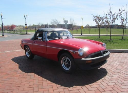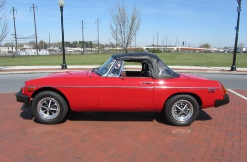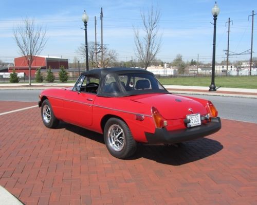 I am pleased to offer on e-bay this low mileage, restored, very clean 1978 MGB Roadster in vibrant red with black interior. I am representing this 4 speed manual transmission, very well maintained, garage kept MGB for the current owner who purchased the vehicle in the early eighties. He believes he is the 2nd owner. The current owner had the vehicle fully restored in 1983 and documented the work completed on the car. This very well maintained car comes with new convertible top, boot and tonneau cover and also has an AM/FM/Cassette player with power antenna. The overall condition of this car is excellent. The exterior paint is very glossy with no significant dents or scratches. Lights, Lenses and all Glass and stainless trim are in Excellent condition. MGB wheels are in like new condition with stainless steel trim rings and good tread tires. The interior condition is also excellent. Seats have no wear and dash, door panels, and carpeting are all in great condition. This garage kept MGB looks and drives like a low mileage car. The engine runs well with no smoke, transmission shifts perfectly and is quiet, suspension and brakes work perfectly. Below, I have listed the upgrades / service that have been completed over the last few years. Please feel free to contact me at 717-880-0712 with any questions. Thank you for viewing our ad. Jason The following upgrades/work were completed: -Por-15 Coated, door skins reinforced (no stress cracks). Trunk Por-15 coated -Electric fuel pump / solid state no points -Weber Carb / Early exhaust manifold / K&N air filter -New tube shocks -Stainless steel exhaust -Power antenna -Electric fan