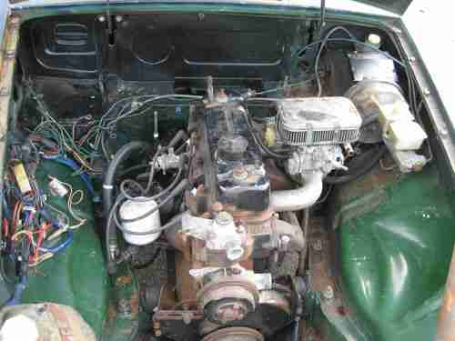 THIS IS A PROJECT CAR. THE BODY IS VERY SOLID, THE FLOORS AND ROCKERS AND DOORS ARE GREAT AND ORIGINAL. THE PAINT IS VERY BAD , THE CLEAR COAT IS PEELING OFF FROM AGE. THERE ARE A FEW DENTS BUT NO CRASH DAMAGE. THE ENGINE HAS A WEBER CARB AND DID RUN 6 YEARS AGE WHEN I GOT THE CAR. IT HAS A NON OVERDRIVE 4 SPEED TRANS. THE RUBBER BUMPERS ARE IN GREAT CONDITION. IT NEEDS ANY INTERIOR AND TOP. THE WINDSHIELD IS ALSO CRACKED. THE CAR HAS BEEN SITTING IN MY SON'S GARAGE UNTIL SEPTEMBER OF 2012. A PROJECT I STARTED AND LOST INTREST IN FINISHING. IF YOU HAVE ANY QUESTIONS CALL ME AT 412-418-0474