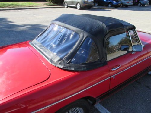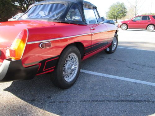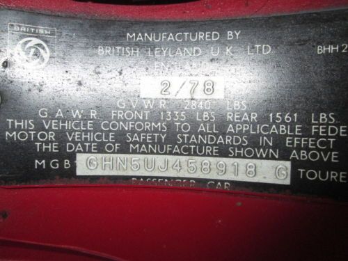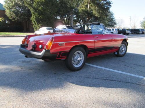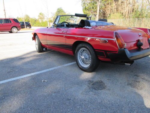 Hello you are bidding on my personal 1978 MGB. If you have been looking for a very nice driver MGB? then look no further! I have owned this car for almost five years. So I am very familiar with the repairs and condition of this car. Below is a list of the car's present condition and features. Body/Paint Original South Carolina car. Body is stright and rust free mainly do to being garage kept most of it life. This B still has its original Jack points (rare) I have been over this car 100% with a large magnet/bondo meter. There No signs of rust, body repairs, or damage. The car was painted trophy red in 2007. From a scale of one to ten I give the paint an eight. "MGB" body stripe installed in May 2012. The Bumpers also have been painted and they look great! Top was replaced in July 2013 (Robbins) black top with zipper back window. Tonneau cover and top cover in good condition. Interior I personally did a dash swap in 2011. The dash is in great condition removed from a 1974 MGB. All Smith's gauges work w/ the addition of a Smith's Volt and Vacuum gauges. All interior panels were replaced with a new set in November 2013. Carpet is original, but very presentable, Seats have been recovered with a black leather kit. Engine/ Mechanical 1800cc 5 Main bearing B-series engine. Compression readings (125-123-123-125) Engine runs flawlessly no ticks or smoke, I have fixed all the oil leaks and right now she leaks no oil! (Hot) oil psi @ 51psi, 70psi (cold) No idling issues or overheating issues even on a hot day in traffic! Top end of the engine was rebuilt in 2009. I use Castrol 20w50 Part synthetic oil and a Zinc additive used on every oil change. This MG has apoxx. 70,000 on the car overall. Carburetion/ Ignition The engine has been fitted with a Weber 32/36 (Electric Choke) carburetor. I have owned MGs before with SU carburetors, and I can tell you Weber makes a very reliable and powefeul carburetor! The ignition system is a aftermarket Lumigntion ignition. It has been also just as reliable. Fresh tune up this past summer. Electrical New 90 amp Saturn, GM CS-130 Alternator swap (Old Lucas went south). All the electrical works and I have never had a battery drain. Although for added safety and security, I have also added a battery cutoff switch mounted behind the passager seat. Wiring has not been chopped or spliced. Courtesy lights installed under the dash. Sound System Newly install 300w Sondpex subwoofer box with a Pyle 300w mini amplifier. The amplifier has an iPod jack so you can listen to all your tunes. Note: An Am/Fm radio has not been installed. Mine and like most iPods have radio Wi-Fi and all our favorte songs..:) So I felt an expensive radio was not needed. Drivetrain/ Suspension Solid four speed gearbox pulls strong, Two year old Spicer Hardy U-Joints, Clutch has about 5K on it. 60 spoke wire wheels, with brand new (4) MG crested, two eared chrome knock offs. Tires have about 85% tread left on them. Wires are straight and true no wobble on the road. I completely rebuilt the front suspension in January 2012. All new bushings, rebuilt shocks etc.. Really transformed the handling of this car! Side Notes... Over 30 years after production the MGB is still the worlds most loved classic sports car. This is mainly due to the plentaful and affordable aray of parts and large sorces of infomation to keep our little cars on the road. Driving and owning MGs for over 15 years, I uderstand all too well the love and detacation owners feel towards these cars. Disclaimer and Buyer information PLEASE READ.... The car is sold "AS-IS" with NO warranty expressed or implied. If you have less than 5 positive feedback please contact me before you bid. Or you bid will be canceled. Buyer has up to 15 days to pick up the car and 7 days to complete full payment. Checks of any kind will need 5 business days to clear before car and title is released. Title is free and clear with "NO" "LIENS" in my possession. Shipping is buyers responsibility but will assist with the shipping option of your choice. I will be present of the removal of the car. Any questions please feel free to contact me. I will answer promptly.