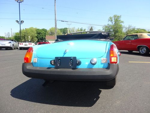 ABSOLUTELY GEORGEOUS 1979 MGB CONVERTIBLE!! THIS CAR HAS BEEN FULLY RESTORED AND LOOKS GREAT INSIDE AND OUT. CAR HAS FAIRLY NEW YOKOHAMA TIRES, NEW CONVERTIBLE TOP WITH NO RIPS, TEARS, OR YELLOWING. CAR STARTS RIGHT UP AND RUNS QUIET. DRIVES AND SHIFTS GREAT AND HAS PLENTY OF PEP FOR A LITTLE CAR. PAINT IS IN GREAT SHAPE AS WELL AND SHOWS REALLY NICELY IN THIS SHADE OF LIGHT BLUE. A GREAT INVESTEMENT AND A GREAT WAY TO HAVE SOME INEXPENSIVE SUMMER FUN. CALL SAM WITH ANY QUESTIONS AT 616-262-2729 OR SEND MESSEGE VIA EBAY. THANKS, HAPPY BIDDING
