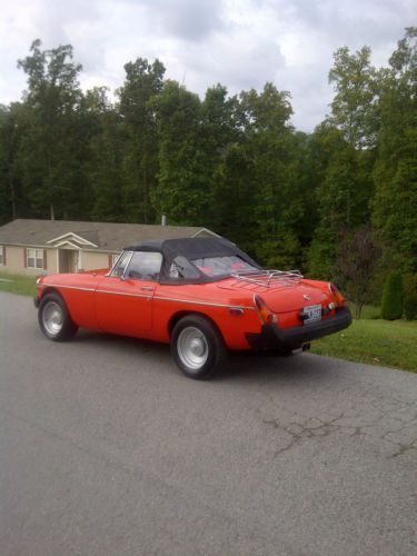 I am selling this for a friend…..It is a very nice looking and recently restored 1979 MGB. He has several collectable cars and does them right, He is selling because he has made another purchase and needs the garage space. This car has not been rained on since he restored it. It wasn't in bad shape when he took off on the project…No rust or anything. It looks great. New paint, new convertible top, new interior, carpet, etc. No leaks or anything….Garage kept. Newer battery……. Great looking convertible. Bid with confidence…..It is a really nice looking and driving MGB. Also had new plug wires (jorange) to match the exterior paint. Just email any questions and I will get with him or give you his #.