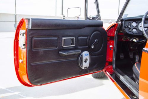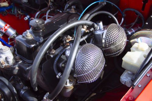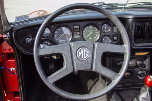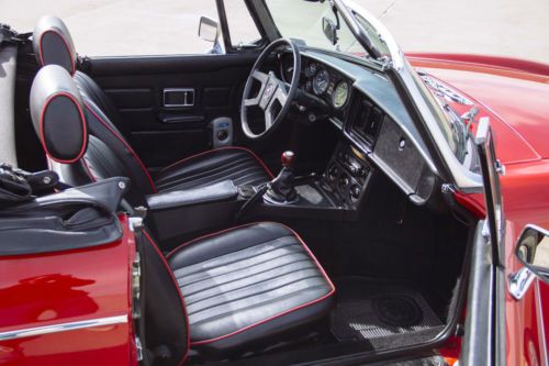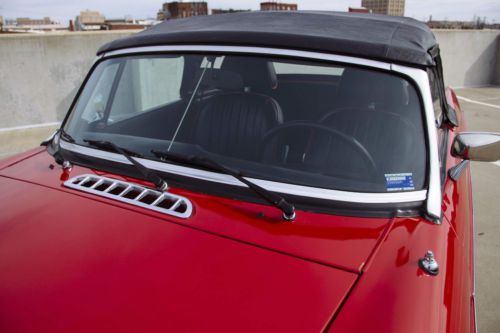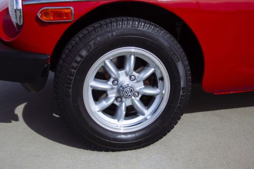 1979 MGB with 42k miles on it. This is one nice MG, it has been restored very nicely! Paint is great on the vehicle, very well done, there is a chip up around the cowl under the windshield (pictures). The interior is very nice with the seats being re-upholstered in black leather with red piping trip. Looks very nice. Wheels are upgraded and the pirelli tires are in great shape. Tourist Trophy exhaust, bumble bee carbs, 4 speed manual transmission that shifts great, and bimini top.