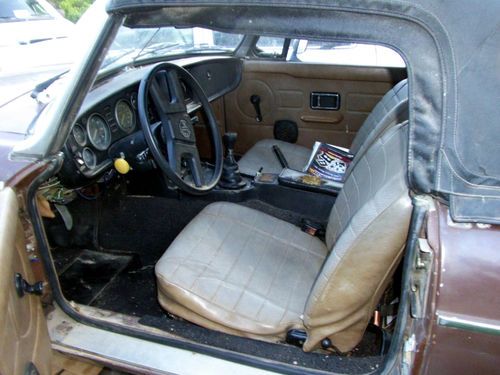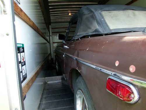 1979 MGB is as found, except for 2 tires, the ones that were on it were dry rotted. It has 43,000 original miles! It was traded back and forth within the same family a couple of times, we have the titles to prove that. It was put up in 1999, in a barn (yes, really) till 2013. It does have a newer top, and comes with the tonneau cover also. Yes, it runs!!! It was put up properly, since it was always under the care of a good mechanic, so all we did was a new battery, go through the hoses and rebuilt the carb. Missing the door key and a trunk lock- we were told that the door key was lost, and they had to get into the trunk, so they drilled the lock out. Paint is OK, it looks like it could be buffed out and look decent The body is straight, there are two small dents, one on the driver's side rear quarter panel on the trim, and the other on the trunk lid. There is no rust in the rocker panels, which, from experience tend to rust out first. Minimal rust here and there, nothing that looks bad. Single carb!!! yay!!! We bled the clutch.The interior is in pretty darn good condition, except for the center console top, see pic. The seat upholstery is good, no rips, but the stuffing is gone (disintegrated)! Starter is dead. We have the original window sticker, owner's manual, and the titles as they were traded back and forth in that family.