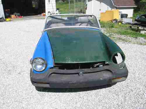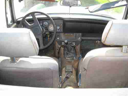 UP FOR BIDDING IS A 79 MGB CONVERTIBLE IN GOOD CONDITION. THE FLOOR PANS AND UNDERCARRIGE ARE IN GREAT CONDITION. THIS CAR HAS SIT IN A BARN FOR 10YRS. I HAVE THE PARTS TO PUT IT BACK TOGETHER. IT APPEARS THAT A TREE FELL ON IT. BENT THE LEFT FENDER AND HOOD. I REPLACED A SECTION OF INNER FENDER PANEL AND REPLACED THE FRONT PANEL BETWEEN FENDERS. I STARTED IB THIS CAR A YEAR AGO AND SINCE THEN HAVE AQUIRED A BAD CASE OF OSTEO ARTHURITIS AND CAN NO LONGER DO WORK ON CARS. THE MILEAGE IS ACTUAL . AND QUESTIONS FEEL FREE TO GIVE ME A CALL AT 812-403-0550. THANKS FOR LOOKING AND GOOD LUCK BIDDING. MY RESERVE ON THIS CAR IS VERY LOW CONSIDERING THE CONDITION.