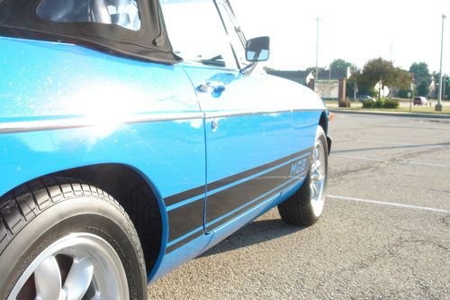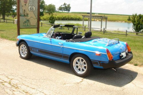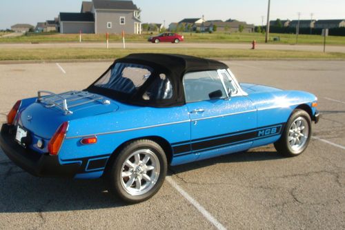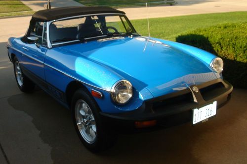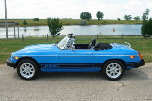 I have for sale on of the nicest MG MGB Roadsters that I have ever owned. It would be very hard to find one in this condition with this low of original mileage again(~58,000). Due to too may cars and car projects I am forced to part with her. The past owner has spent thousands on turning it in to the head turner it is today! It has a very nice re-paint in what I believe to be Tahiti Blue with metallic. It still retains the original look but really pops in the sun making it stand out above others! Has the desirable MGB lower rocker striping as well that nicely accents its color. The convertible top is a very high quality cloth style as seen on expensive Porsche, Mercedes & Jag convertibles. It adds so much more to the look of this car! Also included is a custom cloth boot cover for the top when it is down. The interior is equally as nice in original seat covering material and carpet. Has new Rosewood style steering wheel with matching shifter knob and a leather shifter boot. Has a nice AM-FM-CD stereo with a pair of speakers in the back trunk area. All gauges are in working order as well as the quartz clock. The car has new Superlite Sport Aluminum Wheels and new wide radial tires. Really handles nice with them! Exhaust is a good sounding free flowing system with the stock exhaust manifold. Has the dual SU carb upgrade to the engine with K&N air cleaners. Shifts and drives as nice and smooth as it looks. A blast to get out and have some top down fun! If your looking for a one of a kind affordable British sports car this one cant be beat for the price! All body panels and floor pans are solid and in great condition. Car has always been garaged since the restoration and never driven in bad weather. Please look over all the pictures I have listed and you can decide for yourself on its condition compared to others for sale. I am a private seller and have the clear title in hand. Please ask any and all questions you have prior to bidding. I will answer all and send any other pics needed for your decision making. If you need further information about about any part of this car please ask. The car is being sold "As Is As Described to the Best of My Knowledge". It does not have a warranty. It is sellers responsibility to arrange for transpiration. Payment must be made in full within 7 days by cash or bank cashiers check (certified funds). My intent is to sell the MGB here on Ebay but reserve the right to close the auction if it sells locally. Good Luck!