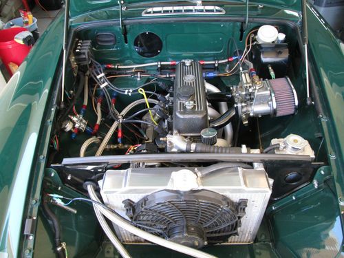 Engine: MGB 1800cc, professionally rebuilt less than 2,000 miles ago. Rebuild included new pistons, rings, bearings, oil pump, cam, lifters, valves, etc. All fuel and oil hoses are steel braided. The Weber 45 DCOE has been dyno-tuned to run perfectly with the APT V12 camshaft - accelerates smoothly from idle to 6,000rpm. The car starts and runs perfectly; no "flat spots!" The radiator is a recent Ron Davis aluminum model, and allows the car to operate fine even at 100+ degrees.