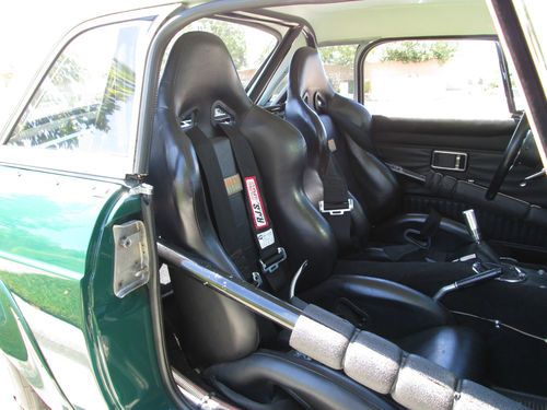 This is a very special 1971 MGB which has received many upgrades (done professionally) to render it an excellent all-round sports machine! The improvements are as follows: 5-speed Nissan transmission, Nissan rear disc brakes, rear panhard bar, gas tube shocks, 3/4" front anti-roll bar, Fuel Safe fuel cell, integrated roll cage, Jamex bucket seats, Electromotive ignition, Accusump oil system, custom aluminum dash housing Autometer guages. Additionally, Lilves flares have been incorporated, which allow room for wheels even larger than the nice 15x6 Superlites currently fitted.