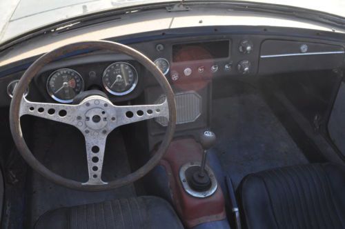 Lifetime California metal-dash MGB, from the most desirable 1965-67 period, purchased from storage in a hanger at a Los Angeles private airport in 2012. Previously was a long-time Long Beach car. An outstanding restoration candidate. I bought it to do for myself but with two finished chrome-bumper metal-dash roadsters already I just can't justify it. Wish I had found this one before I did the other two, it's the best original car I've ever found. CLEAR CURRENT TITLE IN MY NAME. No back fees. Actually currently registered and insured. BOTH BLUE CALIFORNIA PLATES INCLUDED. HERITAGE CERTIFICATE INCLUDED (see photo) Amazingly clean, great color of Mineral Blue. See photos for detail. Later chrome wires with good splines. I put these on one of my other cars and drove to check - no clunking. Later LH blue-plate overdrive on four-synchro transmission. Technically this car should have no synchro on first but I've put these post-1967 overdrives on my other cars and LOVE the synchro on first. Also the overdrive makes all the difference on the freeway and makes 65mph a reasonable cruising speed, with 70+ not painful. Later 18V engine, needs to be rebuilt, doesn't turn. Included is a box of engine parts including pistons and rods from another 18V, but you should plan to rebuild or swap the engine. It's been parked for a long time, so you should plan on doing the fuel system and hydraulics. ABSOLUTELY COMPLETE except for no top and no wiper arms. Rolls freely. Has a couple of unusual accessories: kick panels on the doors, and headlight bucket trim rings, both period dress-up accessories. Seats are incorrect, from a 1968. More comfortable and locking back, but not original. Inner door handles are alloy with wood inlay, also period dress-up. Period wood steering wheel. Someone has put tin floor panels in. No idea why - see the underside photos: the passenger side has no rust and the driver's side has a small amount at the front. Some rust in lower passenger front fender and driver's dogleg . Both jack points completely solid. Passenger dogleg is amazing. Rails solid. See photos. I've restored a number of these and you just don't find them this good. "Cut here" on passenger lower front fender was written on for a TV pilot that we shot with the car, copy of the sizzle reel to the winning bidder! We moved the car from Los Angeles to Las Vegas for the shoot and it is currently in Las Vegas. Both battery brackets complete and rust-free, but driver's side was modified to take a single larger 12V battery. Later fuel pump moved into passenger side bucket. (can send pics on request) Both bumpers have dents, and there's a dent below the passenger-side taillight. All switches and gauges present and good condition. No radio or blanking plate. Currently has a later steel hood/bonnet, but the original aluminum bonnet is included. This hood has very light damage on the nose, it's worth fixing (can send pics on request). Essentially this is the best place you could possibly start for a restoration of the most desirable era of MGB - a chrome-bumper metal-dash with overdrive and good chrome wires. I'm really reluctant to sell it as I know I'll never find another this good to start with, but I just can't justify a third one for myself and the prospect of restoring it for sale won't work - if I do it, I'd keep it. It has been parked for about 20 years though, so expect to do the hydraulics and fuel system for sure! We're experienced with shipping to the UK and Continental Europe and Norway. Nous parlons Francais. Any questions please ask. We've been restoring British cars for 23 years. Best, |