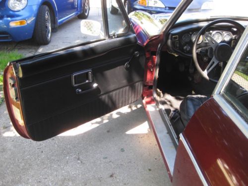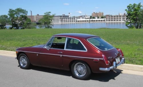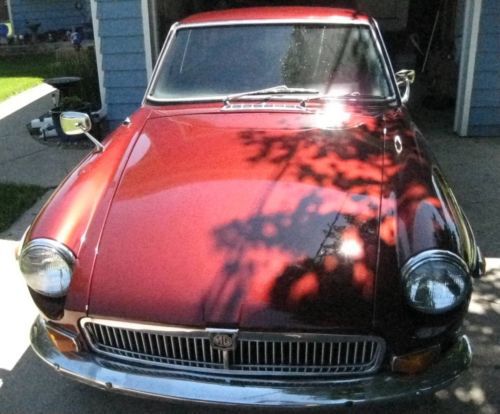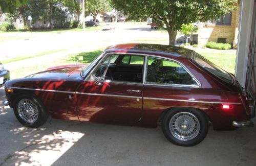 This auction is for my British 1971 MG MGB GT, Burgandy color, sharp, 2 Door hatchback, Good Chrome Wire Wheels (5) with NEW Tires, New Brakes, Rotors, Calpier, Starter, Electric Fuel Pump, 12 V Battery, Door Panels, Spin-On Oil Filter Kit, some suspension parts, NOT Original Engine #18GBUH82364. I bought this car from a Michigan owner a couple years back & now I am ready to let it go to a new home. The car was repainted years ago & is a fair job, shines & a 15 footer, but some waves in paint. The car starts & runs well, engine gets a little hot when driving more than 30 minutes, it may need a tune up. I have a set of 5 original painted wire wheels with old tires & original seats, windshield (fogging around the windshield) that go with the car. Heater is not hooked up but who needs it? Windshield washer not hooked up but I have a new one included in the sale,There is a section of the frame rail on the passenger side that needs repair (see picture), doesn't seem to affect driving the car. The temperature gauge & horn does not work. To be really nice car needs carpet, window gaskets & some rubber parts replaced, rear shocks, frame rail fixed. Due to a recent incident when I was backing the car in the garage I believe the drivers door hinges got bent, door seems to be pushed forward, can't close door all the way without pinching the front fender. I have a source for a good used pair for $80. The 5 chrome wire wheels & tires alone are valued at $1000+, they have a little surface rust in the center & need a good polishing. I just do not have the time, space or $ to keep the car anymore. my loss your gain. I do have the car listed locally so if there are no bids & I have an offer it will be pulled from ebay. DO NOT BID IF NOT SERIOUS! ASK ANY QUESTIONS. I will work with YOUR shipper. Years ago I even worked with someone shipping a car to SPAIN. THIS CAR IS NOT PERFECT BUT SHARP.