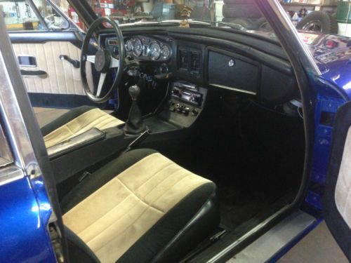 The car runs good and is extremely fun to drive. It was repainted years ago, but its beginning to show its age. The original wheels have been refinished, and they look fantastic. All of the trim rings and center caps are there and also in good condition. There are a few small rust spots along the along the bottom of fenders that are starting to bubble beneath the paint. You can see the rust in the pictures. However, the underside of the doors are rust-free and the floor pans are solid. The odometer and speedometer are not currently working so I'm unable to fairly state how many miles are on the car, but it currently lists 90,554. However, the car runs and shifts great, doesn't smoke, and doesn't leak any oil. The seats and door panels have been reupholstered and are in excellent condition and neither have any rips or stains. The carpet and original floor mats are also in great condition. The dash has a few cracks so we got a carpet overlay that fits nicely and looks stock. The headliner and trim is starting to starting to show its age. I just replaced the white-letter Cooper tires shown in the pictures with brand new Generals and had the oil changed. The tires don't even have 50 miles on them. The car does have a few quirks that need to be addressed. As with any older British car, some of lights and switches stop working after a while and require maintenance. I'm sure it's nothing more than cleaning the switches due to a bad connection, but the turn signals do not work. The wipers also do not work. I recently had knee surgery and my health no longer permits me to get down on the ground to fix these issues. The last issue worth noting is the broken ignition switch. As you can see in the pictures, I currently have the plastic steering column cover off because it won't start by turning the ignition key. Instead, I have to use a screw driver to turn the ignition switch. The ignition lock is good and I'm pretty sure it needs a new ignition switch. I'm sure the part is available online, but I haven't looked into replacing it. Vehicle is being sold "as is" no warranty is included. $500.00 deposit required for winning bidder within 24 hours of auction's end. However, none of those issues are anything major. The important thing is that the car runs and shifts great with no engine problems to speak of, and has nice paint and upholstery. While it's not a show car, it's a very nice driver and it gets looks and compliments everywhere it goes. The GTs are sought after and getting hard to find, and this is a very nice remaining example. |