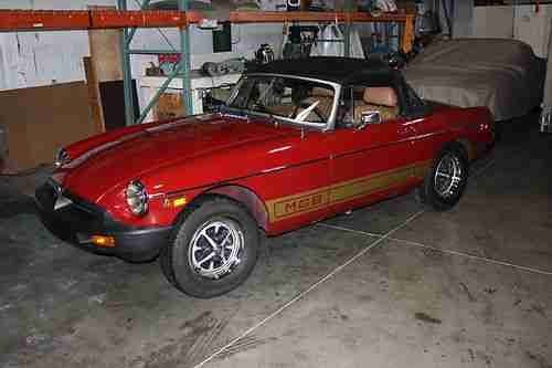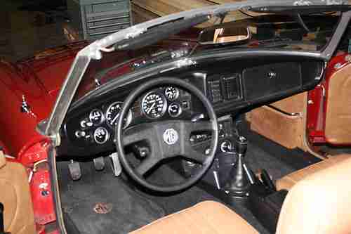 1979 MGB Convertible. Carmine Red Roadster with 27,288 miles. New tan leather seats, trunk kit, and new bonnet (top). Also has Gold pin stripes along the bottom. This car has been stored in a controled climate and is completely rust free and clean. Asking $13,000.00 or best offer. Call 616-293-4576. Summer is coming and you can feel the sun in your face.