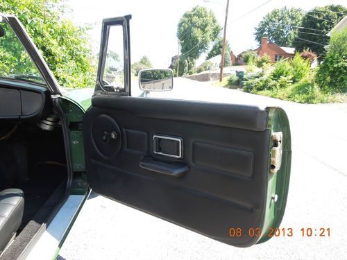 Original British Racing Green car with a complete new Moss interior kit just installed ,$2900.The engine was rebuilt about 20k miles ago when a new set of SU HIF carburetors,complete exhaust system,clutch,fuel tank,Su fuel pump,alternator,and all hoses were also installed $8000.This car has electonic ignition,as well which made it start much easier.It drives very well,holds 75 lbs of oil pressure,idles smoothly.It is equipped with an overdrive and wire wheels,has the original owners manual,touch- up paint,tool bag,tonneau bars and tonneau cover ,which are not pictured.Call 540 447-4389 for any further details.Everything works,including the clock!