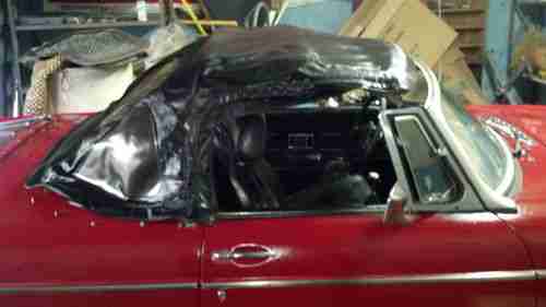 This is a great find and needs someone to get her back on the road. This MGB was made 7/1977 and has 57428 miles on it the best I can tell it has not over 100. The car was parked in the garage in 1986 with some type of electrical problem and has been there ever since. It does not run and is missing the belts and all tires are bad yet they hold air. The brakes are also stuck and it will not roll . I have posted before and after cleaning pictures . It is real shinny from just spraying some cleaning polish on it . There is no serious rust on this car at all but the paint is bubbling all over the car. I can not see any rust under the paint or other side of panels so I believe it is just paint failure. I also cleaned the interior with Amorall to help preserve it as to its shinny appearance. This is sold as is and I do not know much more about it and also do not have a title for and it does not need one in Ga. Please check your state laws for what is required . The top is in great shape and I did not see any major problems with it. If you have any questions please ask and I will answer the best I can thanks.