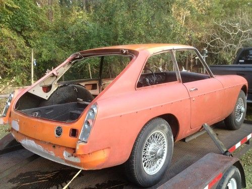 For Sale is a 1968 MGB-GT project. There is a 1968 BGT with wire wheels that body is ready to paint with the exception of some minor repair to the aluminum hood and more sanding that needs to be done to the top. The interior is in fair condition. The dash board looks new but there is a problem that looks like poor installation where it meets the body. There is a dash cap that came with the parts car and with a little creativity, this can be well hidden. The engine that goes with this car is out of the car and on an engine stand. From the serial number, it appears to have come out of a 1972 MGB. It has the standard dual SU carbs and original air cleaners. The engine did start and run when it was taken out of the car. The engine bay is stripped and ready to paint. The VIN was verified against the title by NCDMV and title issued. There is also a 1971 BGT that I bought for parts that comes with the project. The parts car has things that the 68 needed such as master cylinders, etc. The engine that is in this car is from a 1976 and has a single weber carb. The engine in that car runs fine, transmission, clutch, etc are good. I drove it home when I bought it. There is no title to this car. One could possibly be obtained. I just didn't bother with it because I was going to use it for parts. This car has steel wheels. The plus sides of this, you get two engines, an aluminum hood and enough parts to put one car back together and have some left over. The bumpers for both cars are there, but once the 68 is painted, new bumpers would go a long way.