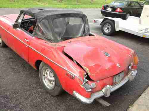 1973 MGB ROADSTER OLDER RESTORATION WITH STORM DAMAGE! Left rear corner of this vehicle was damaged by a fallen tree limb. Damage:Left rear quatrer panel, trunk, left rear taillamp, top, rear body panel. Vehicle appears to be an older restoration. Vehicle is pretty solid considering its age. I was not able to start this vehicle since the key is broken inside the ignition switch.I recently ordered a new replacement ignition switch and hope to receive it before the auction ends.The insurance company paid off $15,000. on this claim. Vehicle is being sold with a New York salvage certificate MV907A. Please check your local salvage laws before bidding. I can arrange shipping at a reasonabe rate. No parts are being sold off this vehicle! I have a new in the box replacement convertible top included with this auction.Contact Allen with questions 201-248-3818.