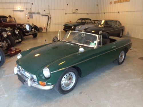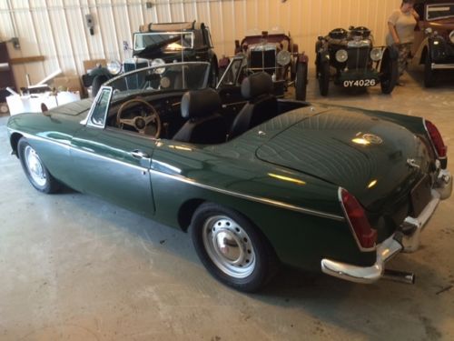 1967 MG B.Overdrive. This is the most desirable MG B The 1967 was the last B not crippled by smog equipment. It is the least B with chrome bumpers and final the 1967 has the more attractive original dash rather than the overstuffed padded dashes of the latter models. This fine example was refreshed with new body panels illuminating all rust. The new British Green paint just shines. The car also benefits by having a modern Crutchfield radio. The seats are Moss Motors leather reclining seats as the primals did not recline. If all this wasn't enough the rare optional overdrive was factory installed making this car a wonderful highway cruiser. This the MG B you have been looking to find.