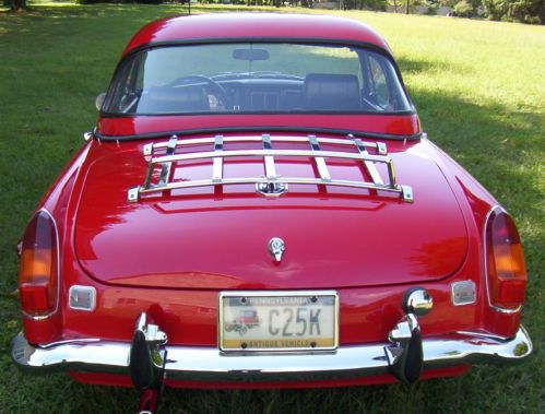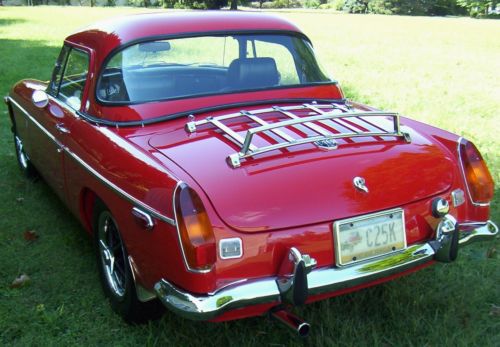 Offered for sale is this MGB with a New Convertible Top and a Hard Top.This car has been completely disassembled and restored to its present condition The Exterior is a Shiny Bright Red with all exterior Chrome replaced. The interior is Black Vinyl which consists of New Seat Covers, Carpets, MG Floor Mats, Door Panels, Dash Cover, New Convertible Top, and Rear Back Seat. This MGB comes comes with its Vinyl Covered Jack and Lug Wrench as well as a Brand New Tonneau cover in the Trunk. The Engine was completely rebuilt as well as the Exhaust System, Front Suspension, Rear, and Air Shocks. This MGB comes with Front Disc Brakes and Rear Drum Brake. The rebuilt Transmission is a 4 speed with overdrive consisting of a New Clutch and drives and shifts very well.The car runs excellent and the body is nice and tight. There are New Tires, and this car also has Air Conditioning which has been added. This is a great extra to have and the Air runs nice and cold. The Engine compartment has been highly detailed with all new parts,and polished Carburators. The Body is straight and solid. This MGB has recently won 2 Concourse Best of Class Awards in 2014 and is a show stopper. I have photos of the restoration when it was in the process. I could only get one photo on the listing. I have many!!!!! If your in the market for a really well done beautiful example of an MGB look no further. Please refer to photo. Please EMAIL WITH ANY QUESTIONS!!!! ALL Sales Are Final. A $2000.00 deposit is due through Pay Pal at the completion of the auction. Domestic and International Buyers must make all shipping arrangements with 7 days of auction ending. |