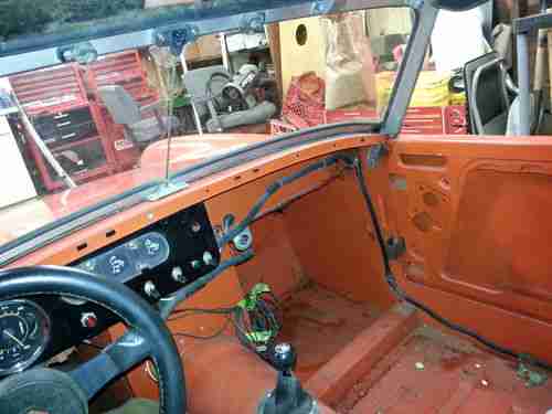 For auction is a 1972 MG Midget. It has a clean title! The car is powered by a Toyota 2TC 1.6L Hemi and uses a 4 speed Toyota transmission. Unknown mileage. It is quit a bit more power than the normal 1275cc and quit a bit lighter. The builder said the car weighed in just over 1200lbs without the windshield and top. The car was built for auto cross purposes and to my knowledge was raced a few times as well as driven on the road for a period of time. The car is in great running condition and starts right up. The car currently is running on a straight header. You will need ear protection when driving the car if you don't want to go deff. The car has a large front sway bar and smaller bar in back. The car has been lowered in front and back. The shocks used are from an MGB. The rear end has upgraded racing axles and a custom axle locator. The car comes with a set of slicks on alloy wheels and a set of the original wheels with good tires. It has a fair amount of negative camber but exact specs are not known. To my knowledge there is no rust anywhere on this car. It has always been stored inside since restoration. There is currently an adjustable fiberglass bucket seat installed with a single racing harness. I will include the original dashboard (stripped) with the wiring harness. The car comes with a set of TR6 seats (one is good, the other needs repaired). The sale will also include a set of doors with roll up windows painted the same as the car. With some minor installations (headlights and turn signals, muffler, speedometer) this car can make a fun and FAST street car. Yes, the car is fast. Please contact me on my cell so I can answer your questions quickly and as accurately as I can. 309-696-4280. My name is Nick.