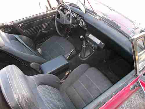 HERE IS A 1975 MG MIDGET IN GREAT CONDTION . PREVIOUS OWNER IN 2008 RESTORED WITH A NEW ENGINE, PAINT FUEL SYSTEM CLUTCH, FUEL SYSTEM, EXHAUST SYSTEM, ELECTRONIC DISTRIBUTOR NEW TOP AND MUCHMORE. ANTIQUE LICENSE AND QUALIFIES FOR LOW INS. RATES. PRESENT OWNER IN 2009 INSTALLED NEW TIMING BELT .GAS TANK AND REBUILT CARB. THIS CAR LOOKS AND RUNS GREAT. NO RUST. WILL NEED A PAINT JOB COLOR IS SWIFT RED. SEATS,DASH , CARPETS IN GREAT SHAPE, NO CRACKS. ALL GAUGES WORK. LOOK AT PICTURES TO SEE HOW GOOD INTERIOR IS. TIRES IN GREAT SHAPE SHOW LITTLE WEAR. THIS IS A GREAT LITTLE FUN CAR THAT DOES NOT NEED ALOT OF MONEY TO BE GREAT, BASICALLY JUST PAINT JOB AND YOUR DONE. RESERVE IS WAY BELOW NADA RETAIL VALUE. GOOD LUCK BIDDING. I AM SELLING FOR A FRIEND SO ASK ANY QUESTIONS AND WILL GET BACK TO YOU. THANKS AND GOOD LUCK BIDDING