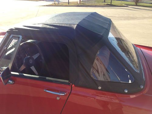 complete new interior including seat covers, webbing and foam, new seat belt guide sets, new seat slide rails, new carpet, door panels, door check straps & all interior trim panels. New taillight, turn and back up lenses, new side marker lamps and lenses, new headlight trim rings. Tires new all around, new lug nuts, new wheel centers and wheel trim rings. New exterior badging. New clutch and pressure plate. Carburator rebuilt. New MG embroidered floor mats. New stop light switch and headlight wire harness. New polished 'MG' logo scuff plates. New stainless steel license plate frame, new chrome license plate lights. Exhaust system refreshed with new hangers and hanger kits. New windshield wipers and wiper arms. New rubber gaskets complete, including windshield, windows seals and doors.