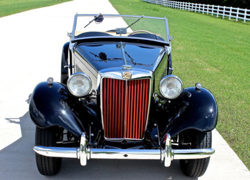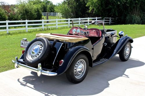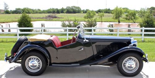 1952 MG TD COMPLETE BODY OFF RESTORATION. VERY NICELY RESTORED TO FACTORY CONDITION. DARK RED LEATHER INTERIOR, SIDE CURTAINS, CANVAS TOP WITH COVER. RUNS AND DRIVES FANTASTIC EVERYTHING IS IN WORKING ORDER. FOR MORE INFO CALL 405 843 6117.