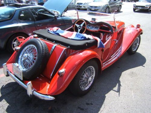 1955 MG TF OLDER RESTORATION BUT PAINTWORK STILL SHINES BRIGHT LOOKS AND DRIVES GOOD NEW STAINLESS STEEL EXHAUST FRONT TO BACK NEW CHROME WHIRE WHEELS, NEW KNOCK OFFS NEW SUNFAST CLOTH HALF TONNAU NEW SUNFAST CLOTH SPARE TIRE COVER NEW BADGE BAR AND FOG LAMPS INSTRUMENTS REBUILT INSTRUMENT PANEL RESPRAYED NEW CARPET SET WITH HEAVY BACKING NEW SEAT COVERS AND INTERIOR TRIM NEW HORNS NEW ENGINE MOUNT GOOD HONEST DRIVER QUALITY CAR FOR SHOW OR ENJOYMENT MOST RECENT PHOTOS ARE THOSE WITH BLANKET WITH UNION JACK FLAG.....ALL PHOTOS LESS THAN 6 MONTHS OLD NOTE INSTRUMENT PANEL REPIANTED CORRECT GOLD PAINT SPEC