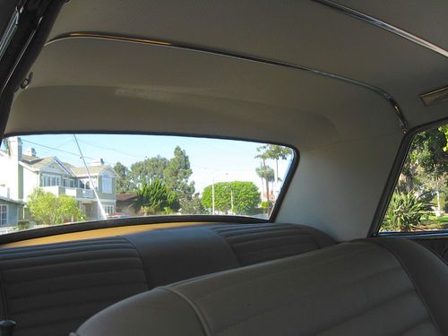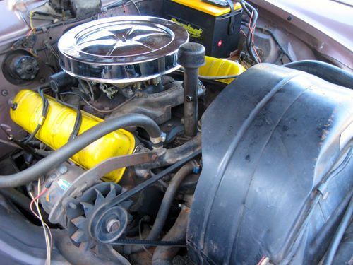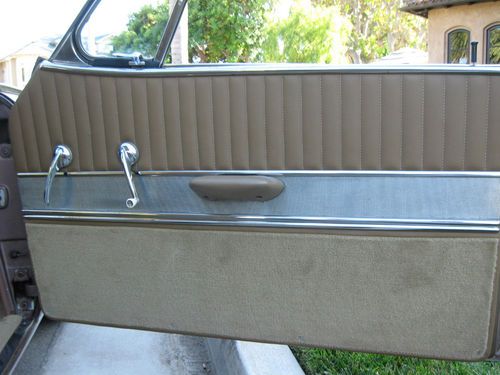 All original body panels to car, with two scrapes on right door. One repaint has plenty of shine, but has thin spots on roof. All chrome is in excellent condition because the car spent its life in the dry desert climate of Palm Springs. All original engine runs great, no smoke or rattles, good smooth shift 4 speed transmission, original radiator with part numbers, glass windshield bottle attached to inner fender, original jack and tire tools in trunk. Surface rust on trunk floor, no rot out cancer associated with road salts.